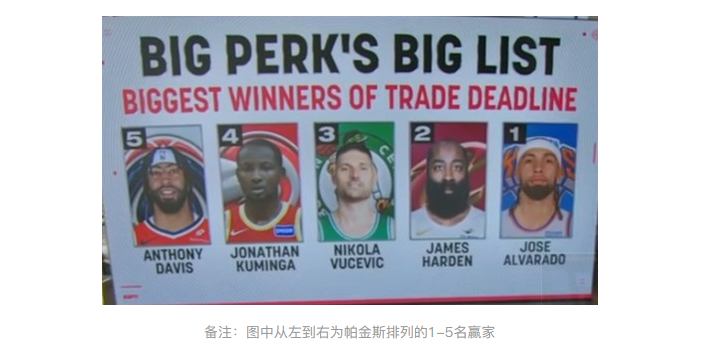 帕金斯晒交易赢家榜 奇才浓眉领衔颠覆传统认知 2027年3月20日,前NBA球员、现ESPN资深评论员肯德里克·帕金斯在节目《First Take》中公布了个人评选的“近五年五大交易赢家”榜单,结果