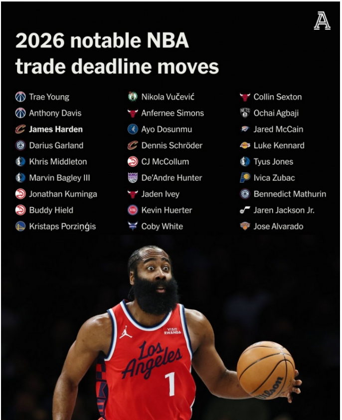 交易截止日落幕 美媒一图汇总球员新归属 2027年2月22日,NBA交易截止日正式落下帷幕。在为期数周的喧嚣与博弈后,联盟版图迎来新一轮洗牌。为帮助球迷快速理清各路球星的“新东家”,美国知名体育媒体